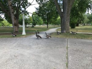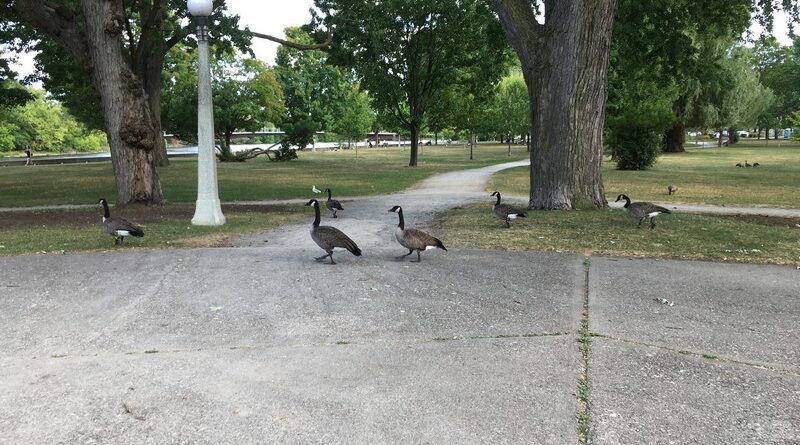 La population grandissante de ces bernaches est devenue problématique pour beaucoup d’usagers des parcs. Près de nous, notre beau parc Strathcona ne fait pas exception : marcheurs, cyclistes, pique-niqueurs, trouvent très désagréable de poser leurs pieds dans les fientes vertes de bernaches qui tachent! Les bernaches adultes peuvent manger plus de 1,5 kg d’herbe par jour et en libérer presque autant en matières fécales. Elles évacuent leurs selles partout causant un grave problème d’esthétique et de salubrité. Aucun doute, les belles bernaches polluent les sentiers pédestres, les pistes cyclables, les espaces verts désignés aires de détente ou de jeux, les plages et les bassins d’eau. Elles peuvent même parfois se montrer agressives envers les humains si elles se sentent dérangées.