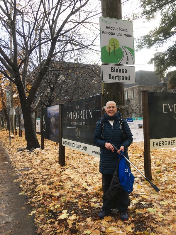 Sur le site de la Ville d’Ottawa, on peut trouver les responsabilités associées à l’adoption d’une route. Elles sont simples : faire le ménage des lieux au moins deux fois par an et en faire un rapport. « J’avais déjà  l’habitude de ramasser des déchets le long de la rivière Rideau lors de mes promenades, raconte-t-elle, alors il me semblait que je pourrais facilement faire ça. »  C’est en 2019 qu’elle s’est engagée à « adopter » l’avenue Blackburn entre Laurier et Mann; elle vient de renouveler son engagement pour cinq autres années.