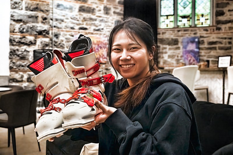 Sandy Hill’s representatives Councillor Stéphanie Plante and MPP Lucille Collard posed with Santa at their annual Festive Breakfast held on November 29. Photo: HS CanadaNagisa Kitamori, a foreign student and Olympic athlete, donated her ski boots to a lucky Francojeunesse student in Sandy Hill. Nagisa graduated from the one-year ESL course and returned to her home country this fall, after touring Niagara. Photo: HS Canada