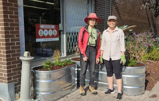 There were limited options at the Quickie for the placement of the garbage bins, let alone concealment, in keeping with municipal by-laws. To help address this, ASH, with the help of the Sandy Hill Green Team, used the grant money to purchase large planters to partially hide the bins. Money from the grant was also used to renovate and restore the garden beds along Somerset. Some plants, such as barberry, have been replaced now by native flowering shrubs and perennials, and fresh soil and mulch have been added. The gardens have been improved, and while there have been setbacks, the planters are sprucing up the Quickie site.
