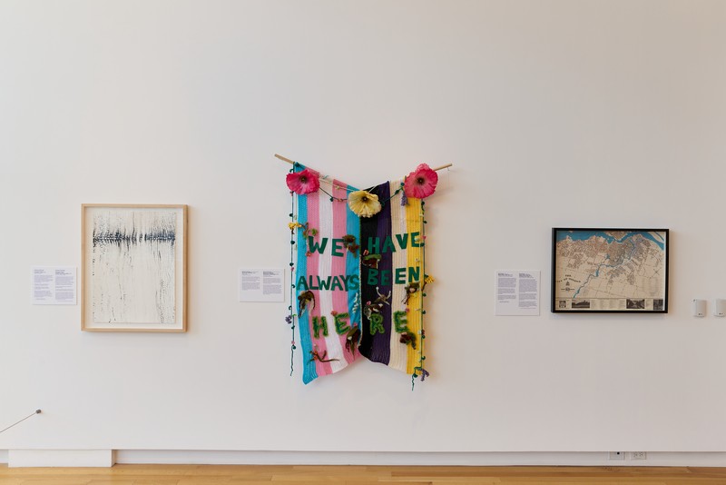 Saivani Sanassy’s tapestry Blooming Together, 2024, hangs nearby. It proclaims: “WE HAVE ALWAYS BEEN HERE.” Look at its flowers and attached elfin stuffies. Nothing scary here. Look at the quietude of Consider it Said, 2015, a work by Christos Pantieras—all done, peacefully.
